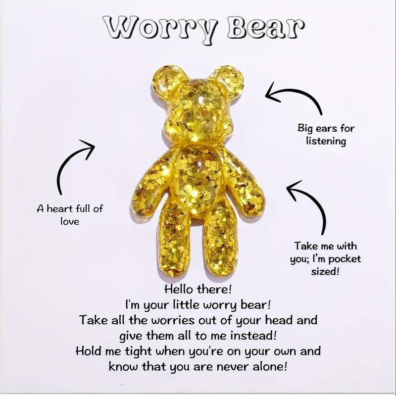 The Worry Bear is a comforting companion designed to help ease anxiety and provide emotional support. Perfect for all ages, this bear serves as a reminder that you are not alone in your worries.